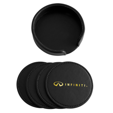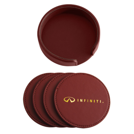Absorb plenty of new business during the next promotional campaign by handing out the Milano coaster set! This handy set of four 3 5/8" diameter coasters (1/8" thickness) is available in an array of colors and features a distinctive styling with burnished edges and a non-skid bottom. An elegant addition to any bar or living room, it can be customized with an imprint of your company logo and or message for heightened brand visibility.