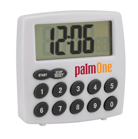 This digital kitchen countdown timer is a promotional gift that is sure to be great timing for your next campaign. Measuring 2 1/2" x 2 5/8" x 1 1/4", this useful product features a jumbo LCD screen and numerals 0-9 raised keys for quick and easy functionality. It counts up or down from 99 hours, 59 minutes and 59 seconds (99:59:59), includes a magnetic back clip/stand and uses one AAA battery (included). Customize with an imprint of your brand logo before the time slips away!