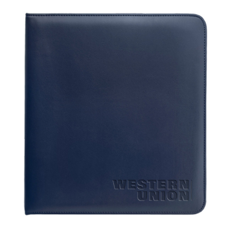 Shuffle and organize all your important documents with this stylish binder! Designed with a 2" ring, this quality crafted, leather-like product measures 11.25" x 2.75" x 11.75" and features turned and stitched edges, concealed rivets and foam padded covers. The interior features two file pockets, a business card window and convenient pen loop. Available in black and navy blue, this binder can be imprinted with a logo, company name or custom message so recipients will carry your brand wherever they go!