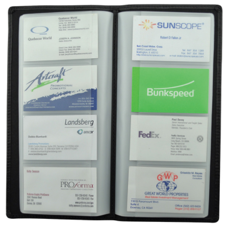 When hosting a large convention or seminar, give attendees something they can use right away and once they leave with this Adams Leather Business Card File! The large capacity 192 card file is perfect for the networking gurus and beginners as well. It's distinctively handcrafted with interior file pockets and special inside window pocket to hold their own business or credit cards as well. Add your company's name, logo and marketing slogan before giving it away at advertising venues where you want to be sure they remember your business!