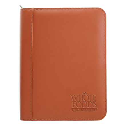 Looking for a way to keep all important documents together? This classic leather ring binder measures 10 5/8" x 8.25" x 1 3/4" and is available in black and tan. Features include a fully padded cover, 1 1/4" metal ring, concealed rivets, finely detailed stitching, microfiber lining, a gusseted file pocket, zippered file compartment and pockets for business cards , pen loop and a zipper closure. The inside back cover can hold an 8" x 5" writing pad (not included). Please specify 3-ring or 7-ring metal when ordering.