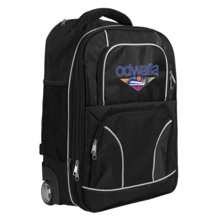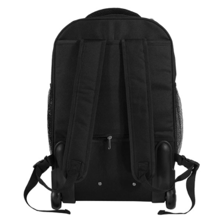 Continue your office hours on the road with this rolling computer backpack! Measuring 18" x 13" x 8", this bag has many features including zippered secure pockets, two side mesh pockets, two front full-size zipper secure pockets for all traveling needs and a protective inner lining. A self-locking internally stored telescopic handle system with comfort grip handle and an EZ-roll in-line skate wheel system provide a comfortable carry and smooth ride!